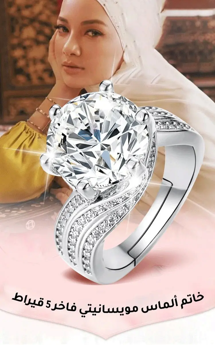 خاتم ألماس مويسانيتي فاخر 5 قيراط